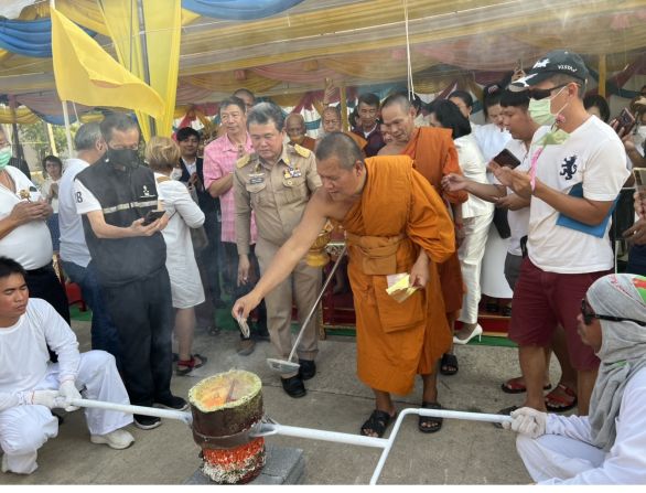 ชุดที่ ๒ พ.ต.อ.ดร.ธงชัย เย็นประเสริฐ นายก อบจ. นนทบุรี กำนันสุรศรี ศรีอิทรสุด เป็นประธานเททอง พระเกต มีคุณจำลอง เขียวฟัก คุณสุปราณี แจ่มจำรัส และครอบครัวเจ้าภาพพระเกตพระทรงเครื่องรัตนะ หน้าตัก 16 นิ้ว