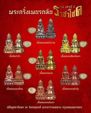 (๑) พระกริ่งเพชรกลับ รุ่นเสาร์ ๕ ราชาโชค สร้าง 7 เนื้อ คือ เนื้อทองผสมโบราณ, เนื้ออัลปาก้า, เนื้อทองเหลืองขัดเงา, เนื้อมหาชนวน, เนื้อทองแดงเถื่อน, เนื้อทองแดงผิวรุ้ง และ เนื้อทองแดงขัดเงา พระกริ่งเพชรกลับมีอานุภาพกลับร้ายกลายเป็นดี กลับดวง พลิกดวงชะตา ค้ำชูดวงให้ดีมีพุทธคุณเฉกเช่นพระกริ่งทั่วไปใช้ได้ 108 ประการสุดแต่จะปรารถนา อาราธนาทำน้ำพุทธมนต์แก้เสนียดจัญไรตัดอุปสรรคฝากหนามทั้งปวง