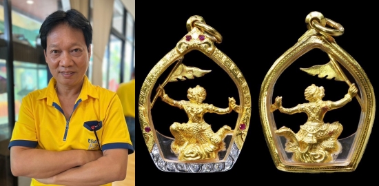 พญาสี่หูห้าตาทรงเครื่อง รุ่นอุ้มทรัพย์ เนื้อโลหะขนาดบูชา 5 นิ้ว และ 3 นิ้ว แช่น้ำมันช้างผสมโขลงและว่านช้างผสมโขลง พุทธาภิเษกเมื่อ 17 สิงหาคม 2568 ที่วัดธรรมชัยมงคล (ทุ่งละคร) ต.กื้ดช้าง อ.แม่แตง จ.เชียงใหม่ จัดสร้างโดย อาจารย์แป๊ะ บางกรวย เป็นเจ้าพิธีผู้มีความรู้แตกฉานในหลายสาขาและเป็นคนแรกที่จัดสร้างหุ่นพยนต์เนื้อโลหะ ปี 2546 ได้รับความนิยมสูงจากคนไทยและคนต่างประเทศ พญาสี่หูห้าตาทรงเครื่องสร้างเป็นรูปแบบมนุษย์ทรงเครื่องเทพศักดิ์สิทธิ์ พระพักตร์แบบมนุษย์ มีสังวาลเครื่องประดับทับทรวงรัดแขนข้อมือข้อเท้านั่งบนกองเงินกองทอง สอบถามได้ที่ร้าน อ.แป๊ะ บางกรวย ชั้น 3 พันธุ์ทิพย์งามวงศ์วาน โทร 089-2039353