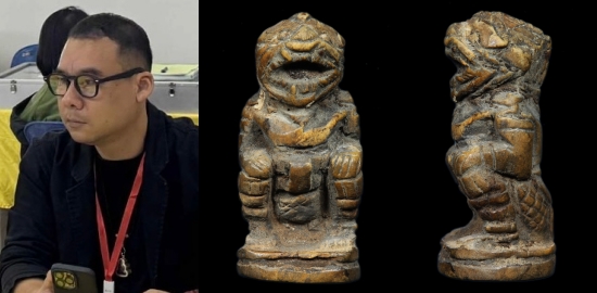 หนุมานหลวงพ่อสุ่น วัดศาลากุน เนื้อไม้แกะ ศิลปะหน้าโขน หลวงพ่อสุ่น เป็นพระเกจิคณาจารย์มีวิชาอาคมและวัตรปฏิบัติดีเป็นที่น่าเกรงขาม ท่านสร้างวัตถุมงคลไว้หลายอย่างที่โด่งดังติดอันดับต้นๆในเบญจภาคีเครื่องรางก็คือ หนุมาน แกะด้วยต้นพุดและต้นรัก ท่านปลูกไว้หน้ากุฏิรดด้วยน้ำมนต์ทุกวัน กระทั่งต้นโตขึ้นจึงนำต้นแกะเป็นหนุมานทรงเครื่อง เรียกว่าพิมพ์หน้าโขน และไม่ทรงเครื่องเรียกว่าพิมพ์หน้ากระบี่ ต้นไม้ทั้งสองมีชื่อเป็นมงคลอยู่แล้วนำมาแกะและปลุกเสกได้รับการยกย่องว่าสุดยอดคงกระพันชาตรีมีแคล้วคลาดจากอันตรายทั้งปวง หนุมานหน้าโขนตนนี้ของ คุณสุรพงศ์ ชูนาม หรือโอ๋ เมืองโอ่ง โทร. 086-6551559