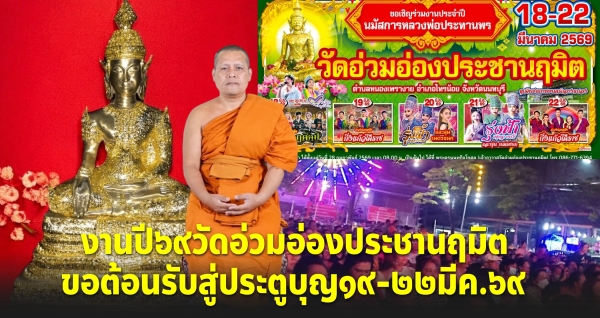 - งานปี ๖๙ วัดอ่วมอ่องประชานฤมิต “ขอต้อนรับสู่ประตูบุญ” ๑๙-๒๒ มีนาคม ๖๙ 14 มี.ค. 2569