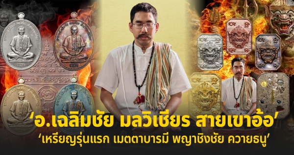 ♦♦♦ อ.เฉลิมชัย มลวิเชียร ฆราวาสดังสายเขาอ้อ และเกจิอาจารย์สายเขาอ้อ จังหวัดพัทลุง ปลุกเสกวัตถุมงคลรุ่นแรก ณ ถ้ำฉัททันต์บรรพต วัดเขาอ้อ จ.พัทลุง เมื่อวันเสาร์ ที่ 28 มีนาคม 2569 ประกอบด้วย (1.) เหรียญไข่อาจารย์เฉลิมชัย มลวิเชียร รุ่นแรก (2.) ควายธนูจอมอาถรรพ์ รุ่นแรก (3.)พญาชิงชัยองค์ครู รุ่นแรก (4.) พรายกระซิบ รุ่นแรก (5.) ปิดตาพญาภูติ อ.เฉลิมชัย มลวิเชียร (6.)พระพุทธเมตตาประทานพร อ.นิพนธ์ วัดลอน พัทลุง (7.) พระขรรค์เพชรกลับ รุ่นปราบไตรจักร หลวงปู่หนูเพชร (8.) กุมารน้อยแก้วเพชร หลวงปู่หนูเพชร (9.) ลูกอมพยัคฆ์เขาอ้อ (10.)ตะกรุดพยัคฆ์เขาอ้อ (11.)แหวนบันดาลโชค (12.) ผ้ายันต์