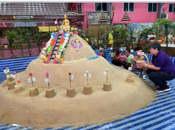 สงกรานต์วัดตะเคียน ๑๓-๑๖ เมษายน ๖๙ ก่อพระเจดีย์ทราย “สรงน้ำพระ ๑๖ เมษายน ๖๙”