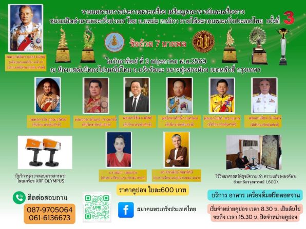 - สมาคมพระกริ่งประเทศไทยประกวดพระ ชิงถ้วย ๗ นายพล ๓ พ.ค.๖๙ ไปรษณีย์ไทย 19 เม.ย. 2569