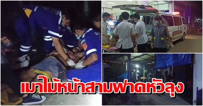 ที่เกิดเหตุ พบผู้บาดเจ็บนอนหงายอยู่ข้างแคร่ในบ้าน มีเลือดไหลออกเต็มหน้าผากและใบหน้า ผู้บาดเจ็บสลบไม่ได้สติ เจ้าหน้าที่กู้ภัยจึงได้ทำการปฐมพยาบาลบาดแผลที่หน้าผาก ซึ่งมีรอยยุบ ในเบื้องต้น จึงรีบนำผู้บาดเจ็บส่งโรงพยาบาลอำนาจเจริญ ผู้ช่วยเหลืออย่างเร่งด่วน เพราะมีอาการบาดเจ็บสาหัส เนื่องจากถูกของแข็งกระแทกที่หน้าผากและใบหน้าอย่างรุนแรง