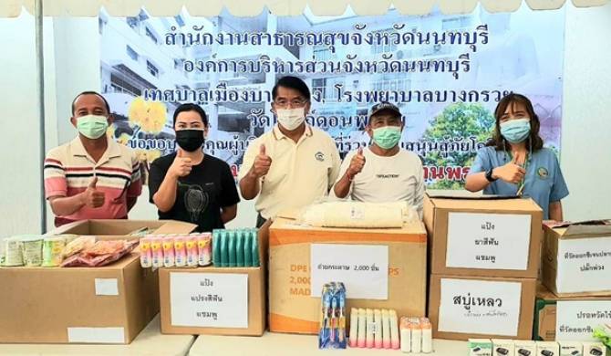 วันที่ 27 ส.ค.64 เวลา 13.00 น. ณ โรงพยาบาลสนาม วัดโบสถ์ดอนพรหม จ.นนทบุรี ชัยยศ ศิริสวัสดิ์ ชมรมช่างภาพการเมือง, เนรมิต อติสุคนธ์ ประธานชมรมเพื่อนบัวทองทีเคแบดมินตัน, วรพันธ์ ทิพากร ประธานกรรมการ บจก.ปพันธ์เทค พร้อมด้วย ธนพร วัฒนสุวกุล ได้ร่วมกันเป็นตัวแทนมอบอุปกรณ์ทางการแพทย์ อาทิ ปรอทวัดไข้ แบบดิจิตอล 100 ตัว, เครื่องวัดออกซิเจนปลายนิ้ว พร้อมแบตเตอรี่ 45 ชุด, ปลั๊กพ่วง แก้วกระดาษ 200 ใบ, กาแฟสำเร็จรูป+โอวัลติน ทรีอินวัน รวม372 ซอง, ชุดเครื่องใช้ ยาสีฟัน แปรงสีฟัน สบู่เหลว แชมพู แป้ง 60 ชุด, โจ๊กกึ่งสำเร็จรูป 60 ถ้วย และ ขนมทานเล่น 107 ซอง ให้แก่ บุคลากรทางการแพทย์ประจำโรงพยาบาลสนาม วัดโบสถ์ดอนพรหม อ.เมือง จ.นนทบุรี ด่านหน้าสู้ภัย โควิด-19