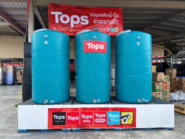 • จุดบริการ “รวมพลังน้ำใจ ช่วยชาวใต้” เพื่อกระจายถุงปันน้ำใจให้แก่ผู้ประสบภัยอย่างต่อเนื่อง โดยภายในถุงประกอบด้วยอาหารพร้อมทาน ปลากระป๋อง บะหมี่กึ่งสำเร็จรูป น้ำดื่ม และของใช้จำเป็นต่อการดำรงชีพ ท็อปส์ได้ส่งมอบถุงปันน้ำใจแล้วกว่า 13,000 ถุง รวมมูลค่า 6,500,000 บาท ครอบคลุมครัวเรือนที่ได้รับผลกระทบในพื้นที่สำคัญ พร้อมทั้งเปิดพื้นที่ภายในศูนย์ฯ ให้ประชาชนใช้เป็น จุดพักพิง และรับความช่วยเหลือได้อย่างปลอดภัย ตลอดช่วงวิกฤต