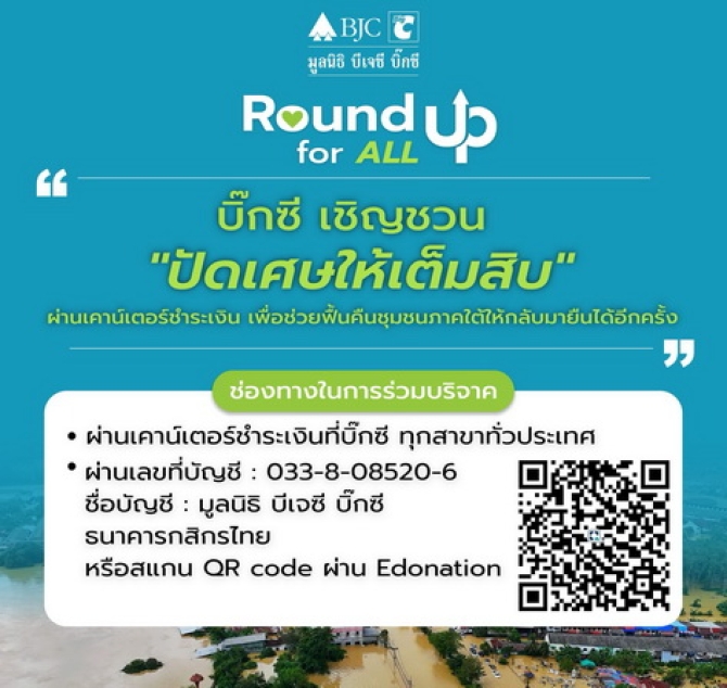 มูลนิธิ บีเจซี บิ๊กซี พร้อมด้วย กลุ่มบีเจซี บิ๊กซี และ บิ๊กซี ซูเปอร์เซ็นเตอร์ ขอเชิญชวนประชาชนร่วมบริจาคสิ่
