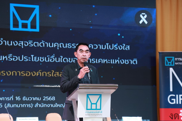 เมื่อวันที่ 16 ธันวาคม 2568 พลเอก สุพจน์ มาลานิยม ประธานกรรมการการเคหะแห่งชาติ เป็นประธานในพิธีลงนามการแสดงเจตจำนงสุจริตด้านคุณธรรม ความโปร่งใสและการต่อต้านการรับสินบนหรือผลประโยชน์อื่นใดของการเคหะแห่งชาติ ภายใต้โครงการองค์กรใสสะอาด โดยมี ดร.มณเฑียร อินทร์น้อย กรรมการการเคหะแห่งชาติ, นางสาวเบญจพร ชาครานนท์ กรรมการการเคหะแห่งชาติ, นายทวีพงษ์ วิชัยดิษฐ ผู้ว่าการการเคหะแห่งชาติ, ผู้บริหารระดับสูง และผู้ปฏิบัติงานการเคหะแห่งชาติเข้าร่วมพิธี เพื่อแสดงเจตนารมณ์ร่วมกันในการต่อต้านการทุจริต สร้างค่านิยมด้านคุณธรรม และความโปร่งใสในการปฏิบัติงาน โดยยึดถือคุณธรรม จริยธรรมและผลประโยชน์ของประชาชนเป็นสำคัญ พร้อมมุ่งมั่นแก้ไขปัญหาของประเทศชาติและประชาชนอย่างยั่งยืน ณ ห้องประชุมชั้น 3 อาคารสันทนาการ การเคหะแห่งชาติ สำนักงานใหญ่