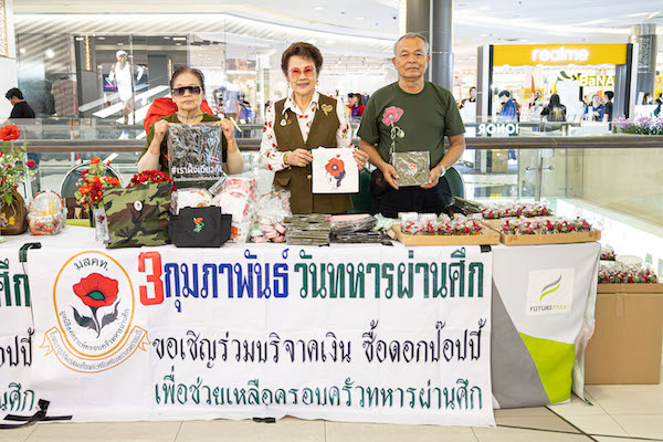 ศูนย์การค้าฟิวเจอร์พาร์ คและสเปลล์ เชิญชวนประชาชนและผู้มาใช้บริ การ ร่วมสนับสนุนการจำหน่าย ดอกป๊อปปี้และสินค้าจากมูลนิธิ สงเคราะห์ครอบครัวทหารผ่านศึก ในพระราชูปถัมภ์สมเด็จพระศรี นครินทราบรมราชชนนี เนื่องในโอกาส วันทหารผ่านศึก วันที่ 3 กุมภาพันธ์ของทุกปี ภายใต้โครงการ “ฟิวเจอร์ให้ใจ” ซึ่งมุ่งส่งต่อกำลังใจและการแบ่ งปันสู่สังคม