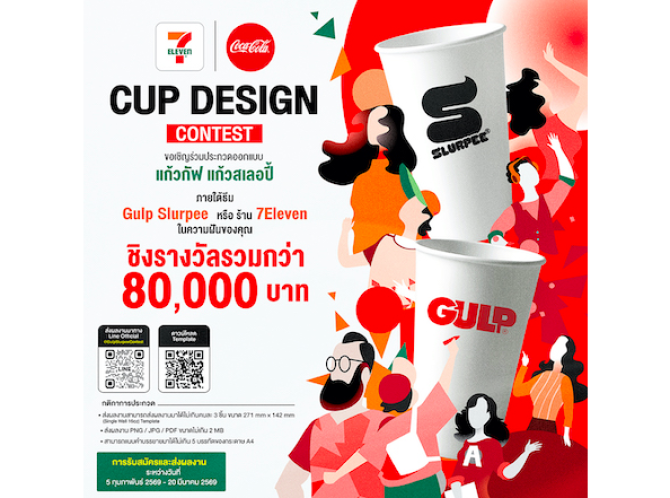 Gulp Slurpee ภายใต้การบริหารงานโดยบริษัทซีพี ออลล์ จำกัด (มหาชน) จับมือ บริษัทไทยน้ำทิพย์ โคคา-โคล่า เปิดพื้นที่สร้างสรรค์ให้คนรุ่นใหม่ นักเรียน นักศึกษา และประชาชนทั่วไปกลุ่ม Gen Z อายุ 15–25 ปี ร่วมปล่อยพลังไอเดียในโครงการ Cup Design Contest ออกแบบแก้วเครื่องดื่ม Gulp และ Slurpee ภายใต้หัวข้อ “Gulp Slurpee ความสนุกในสไตล์คุณหรือร้าน 7-Eleven ในความฝันของคุณ” เพื่อชิงเงินรางวัลรวมมูลค่ากว่า 80,000 บาท