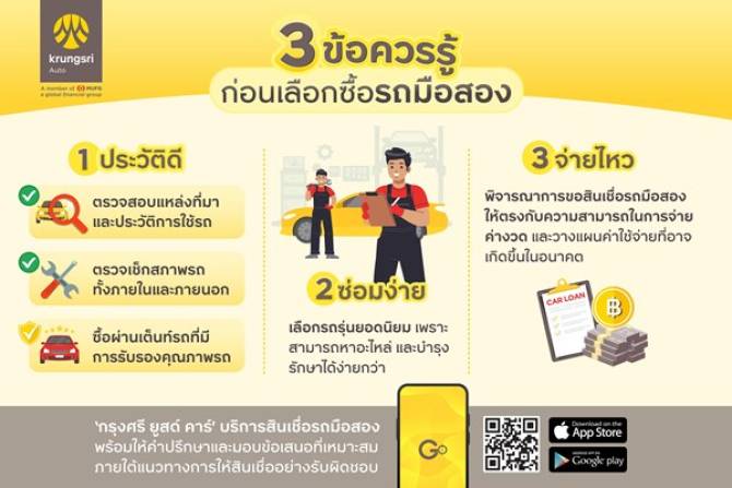 การเป็นเจ้าของรถมือสองนั้น เป็นอีกหนึ่งทางเลือกที่จะช่วยยกระดับชีวิตผู้ใช้รถให้มีโอกาสในการประกอบธุรกิจและใช้ชีวิตได้ง่ายยิ่งขึ้น โดยไม่ต้องรอเก็บเงินก้อน หากทำการหาข้อมูลอย่างชาญฉลาด โดยมีบริการสินเชื่อรถมือสองจาก ‘กรุงศรี ยูสด์ คาร์’ ที่พร้อมให้คำปรึกษาและมอบข้อเสนอที่เหมาะสมกับลูกค้า ภายใต้แนวทางการให้สินเชื่ออย่างรับผิดชอบ