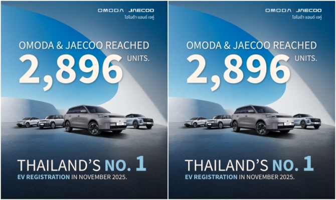 OMODA & JAECOO (อ่านว่าโอโมด้า แอนด์ เจคู่) ผู้นำด้านนวัตกรรมยานยนต์พลังงานไฟฟ้าระดับพรีเมียม ประกาศความสำเร็จครั้งสำคัญ หลัง OMODA & JAECOO สามารถคว้าอันดับ 1 ยอดจดทะเบียนรถไฟฟ้าในประเทศไทยประจำเดือนพฤศจิกายน 2568 โดยส่วนใหญ่เป็นรุ่น JAECOO 5EV สะท้อนความเชื่อมั่นของผู้บริโภคที่มีต่อแบรนด์
