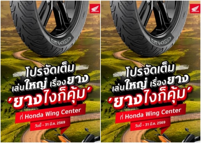 โปรโมชัน “ยางไงก็คุ้ม” มอบราคาพิเศษตั้งแต่วันนี้จนถึง 31 มีนาคม 2569 เพื่อให้ผู้ใช้รถจักรยานยนต์ฮอนด้ามั่นใจทุกเส้นทาง กับยางคุณภาพที่ช่วยเสริมความปลอดภัยในทุกการเดินทาง