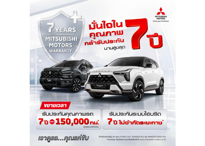 บริษัท มิตซูบิชิ มอเตอร์ส (ประเทศไทย) จำกัด สร้างปรากฏการณ์ใหม่ให้กับ ตลาดรถยนต์ไฮบริด ด้วยการเปิดตัว “โปรแกรมขยายระยะเวลาการรับประกัน (Extended Warranty Program) รูปแบบใหม่” ที่ให้ความคุ้มครองทั้งคุณภาพผลิตภัณฑ์ และระบบไฮบริด นานสูงสุด 7 ปี สะท้อนความเชื่อมั่นในคุณภาพของผลิตภัณฑ์ “เรามั่นใจในคุณภาพ ถึงกล้ารับประกันที่ยาวนานกว่า” และตอกย้ำการเป็นผู้นำที่แข็งแกร่งในตลาดรถยนต์ไฮบริด ด้วยการมอบสิทธิประโยชน์ให้แก่ลูกค้าที่ตัดสินใจเป็นเจ้าของ ออล-นิว มิตซูบิชิ เอ็กซ์ฟอร์ส เอชอีวี และ มิตซูบิชิ เอ็กซ์แพนเดอร์ และ เอ็กซ์แพนเดอร์ ครอส เอชอีวี ตั้งแต่เดือนมีนาคม 2569 เป็นต้นไป รวมถึง ขยายความคุ้มครองไปยังลูกค้าปัจจุบันที่เป็นเจ้าของรถยนต์ทั้งสามรุ่น นับตั้งแต่วันแรกของการเปิดตัว อันเป็นการสร้างความมั่นใจให้กับลูกค้าในระยะยาว ตามมาตรฐานการบริการหลังการขาย ภายใต้แนวคิด “เราดูแล คุณแค่ขับ”