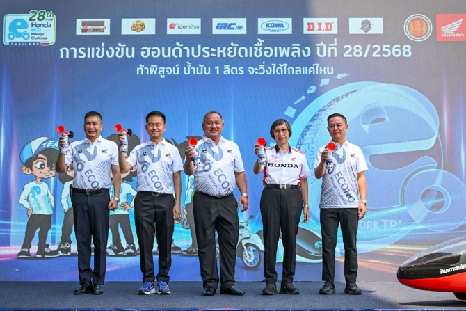 ไทยฮอนด้า ร่วมกับสำนักงานคณะกรรมการการอาชีวศึกษา กระทรวงศึกษาธิการ และตัวแทนจำหน่ายรถจักรยานยนต์ฮอนด้าทั่วประเทศ จัดการแข่งขัน “ฮอนด้าประหยัดเชื้อเพลิง (Honda Eco Mileage Challenge)” ครั้งที่ 28 ประจำปีการศึกษา 2568 เมื่อวันที่ 25–26 มีนาคมที่ผ่านมา ณ สนามช้าง อินเตอร์เนชันแนล เซอร์กิต จังหวัดบุรีรัมย์ ภายใต้กติกาใหม่ โดยมุ่งเน้น “ความปลอดภัย” ควบคู่กับ “ประสิทธิภาพการใช้พลังงาน” ส่งผลให้การแข่งขันเข้มข้นยิ่งขึ้น โดยในปีนี้ วิทยาลัยสารพัดช่างพิษณุโลก พลิกกลับมาคว้าแชมป์สถิติสูงสุดประเภทรถประดิษฐ์ หลังคว้าอันดับ 2 ปีการศึกษา 2567 พร้อมทำลายสถิติประหยัดเชื้อเพลิงสูงสุดด้วยตัวเลข 1,023.613 กิโลเมตรต่อลิตร ท่ามกลางการเข้าร่วมของเยาวชนกว่า 289 ทีมทั่วประเทศ นำโดย ดร.อารักษ์ พรประภา ประธานบริษัท ไทยฮอนด้า จำกัด พร้อมด้วยนายยศพล เวณุโกเศศ เลขาธิการคณะกรรมการการอาชีวศึกษา เป็นประธานในพิธีเปิด