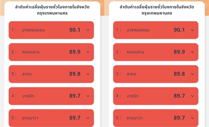 กระทรวง อว. โดย GISTDA เกาะติดสถานการณ์ฝุ่น PM 2.5 ด้วยข้อมูลจากดาวเทียมแบบรายชั่วโมงผ่านแอปพลิเคชัน “เช็คฝุ่น” รอบเวลา 08.00 น. ของวันที่ 5 กุมภาพันธ์ 2568 พบค่าฝุ่น PM2.5 ของกรุงเทพมหานคร เมีผลกระทบต่อสุขภาพ และระบบทางเดินหายใจในระดับส้ม จำนวน 44 เขต โดยค่าฝุ่น PM 2.5 สูงสุด คือเขต #บางคอแหลม 90.1 ไมโครกรัม ส่วนเขตอื่นๆที่เหลือค่าฝุ่น PM2.5 ระดับส้ม ที่เริ่มมีผลกระทบต้อสุขภาพ