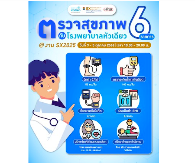 โรงพยาบาลหัวเฉียว ชวนตรวจสุขภาพฟรี 6 รายการ ในงาน SX2025