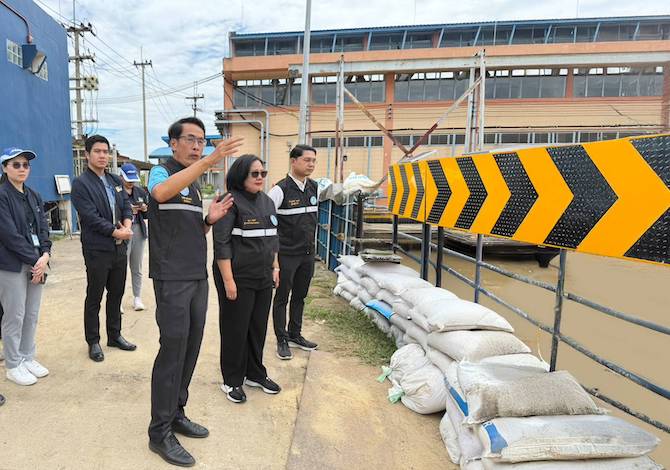 นางสาวสุวรา ทวิชศรี ผู้ว่าการการประปานครหลวง (กปน.) พร้อมด้วย นายพรศักดิ์ สมรไกรสรกิจ ผู้ช่วยผู้ว่าการ (แหล่งน้ำและคุณภาพน้ำ) รักษาการในตำแหน่ง รองผู้ว่าการ (ผลิตน้ำ) ลงพื้นที่ตรวจโรงสูบน้ำดิบสำแล พร้อมมอบนโยบายให้พนักงานและผู้ปฏิบัติงานเตรียมพร้อมเฝ้าระวังและป้องกันน้ำท่วม จากการที่ กรมชลประทานมีนโยบายปรับเกณฑ์การระบายน้ำเพิ่มเป็น 2,500 ลบ.ม./วินาที ตั้งแต่วันที่ 3 ตุลาคม 2568 เวลา15.00 น. และมีแนวโน้มเริ่มระบายน้ำมากขึ้นตามขั้นบันได ประกอบกับฝนที่ตกมากขึ้นจากพายุโซนร้อนแมตโม และน้ำทะเลที่หนุนสูงในช่วงนี้ โดยได้สั่งการให้ผู้ปฏิบัติงานเตรียมความพร้อมกำแพงป้องกันน้ำท่วมเตรียมกระสอบทรายไว้ป้องกันเหตุฉุกเฉินและติดตามข้อมูลสถานการณ์การเคลื่อนตัวมวลน้ำของกรมชลประทานอย่างใกล้ชิด เพื่อเฝ้าระวังระดับน้ำป้องกันให้โรงสูบน้ำดิบสำแลสามารถลำเลียงน้ำดิบเข้าสู่โรงงานผลิตน้ำได้อย่างต่อเนื่อง