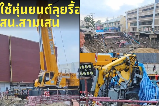นอกจากนี้เมื่อคืนได้มีการถมทรายจํานวน 800 คิว ประมาณ 3,800 ลูกบาศก์เมตร และวันนี้ตอนเช้าจะมีการถมทรายอีก 1,200 ลูกบาศก์เมตร รวมเป็นทรายกว่า 5,000 ลูกบาศก์เมตร ทำให้ผนังดินมีความเสถียรมากขึ้น และภาพรวมอาคารอื่นโดยรอบ สน.สามเสน ก็มีความมั่นคงไม่มีการขยับตัว