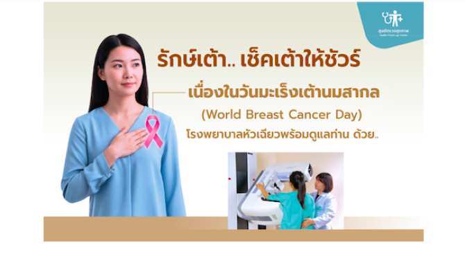 เนื่องในวันมะเร็งเต้านมสากล โรงพยาบาลหัวเฉียวห่วงใยสุขภาพคุณผู้หญิงด้วยแพ็กเกจชุดตรวจมะเร็งเต้านมด้วยเครื่องดิจิทัลแมมโมแกรม 3 มิติ พร้อมอัลตราซาวด์เต้านม (3D TomosynthesisMammogram With Breast Ultrasound) ช่วยให้ตรวจพบความผิดปกติได้ตั้งแต่ระยะเริ่มต้น ป้องกันความเสี่ยงและเพิ่มโอกาสในการรักษาได้ ในราคาสบายกระเป๋า ตั้งแต่วันที่ 1 – 31 ตุลาคม 2568