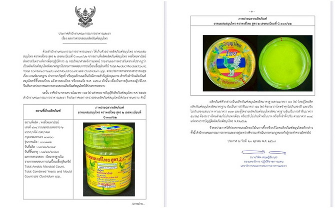รายงานข่าวแจ้งว่า เมื่อวันที่ 20 ตุลาคม 2568 มีประกาศสำนักงานคณะกรมการอาหารและยา เรื่อง ผลการตรวจสอบผลิตภัณฑ์สมุนไพร ด้วยสำนักงานคณะกรรมการอาหารและยา ได้เก็บตัวอย่างผลิตภัณฑ์สมุนไพร ยาดมผสมสมุนไพร ตราหงส์ไทย สูตร ๒ เลขทะเบียนที่ G ๓๐๙/๖๒ จากสถานที่ผลิตผลิตภัณฑ์สมุนไพร หงส์ไทยพาณิชย์ส่งตรวจวิเคราะห์ทางห้องปฏิบัติการ ณ กรมวิทยาศาสตร์การแพทย์ รายงานผลการตรวจวิเคราะห์ปรากฏว่า เป็นผลิตภัณฑ์สมุนไพรผิดมาตรฐานในรายการทดสอบการปนเปื้อนเชื้อจุลินทรีย์ Total Aerobic Microbial Count, Total Combined Yeasts and Mould Count และ Clostridium spp. ตามประกาศกระทรวงสาธารณสุขเรื่อง เกณฑ์มาตรฐาน ค่าความบริสุทธิ์ หรือคุณลักษณะอื่นอันมีความสำคัญต่อคุณภาพ สำหรับตำรับผลิตภัณฑ์สมุนไพรที่ขึ้นทะเบียน แจ้งรายละเอียด หรือจดแจ้ง พ.ศ. ๒๕๖๔ ดังนั้น เพื่อเป็นการคุ้มครองผู้บริโภค จึงเห็นควรประกาศผลการตรวจสอบผลิตภัณฑ์สมุนไพรให้ประชาชนทราบ ฉะนั้น อาศัยอำนาจตามความในมาตรา ๖๕ (๒) แห่งพระราชบัญญัติผลิตภัณฑ์สมุนไพร พ.ศ. ๒๕๖๒