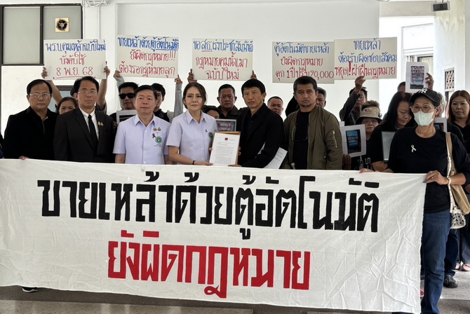 ด้านนายธีระ วัชรปราณี ผู้อำนวยการเครือข่ายองค์กรงดเหล้า กล่าวว่าเครือข่ายเรามีจุดยืนและข้อเสนอต่อกระทรวงสาธารณสุข กรมควบคุมโรค สำนักงานคณะกรรมการควบคุมเครื่องดื่มแอลกอฮอล์ และคณะกรรมการควบุคมเครื่องดื่มแอลกอฮอล์ ดังนี้ 1.ขอให้ตรวจสอบการขายเครื่องดื่มแอลกอฮอล์ ทางตู้อัตโนมัติ (ตามเอกสารแนบ) ที่พบว่าเป็นการฝ่าฝืนพระราชบัญญัติควบคุมเครื่องดื่มแอลกอฮอล์ ฉบับที่ 2 พ.ศ.2558 มาตรา 30 (1) กำหนดให้การจำหน่ายดังกล่าวต้องยืนยันตัวตนผู้ซื้อได้และเป็นไปตามหลักเกณฑ์ วิธีการและเงื่อนไขที่คณะกรรมการควบคุมเครื่องดื่มแอลกอฮอล์ประกาศกำหนด ซึ่งปัจจุบันยังไม่มีประกาศดังกล่าวออกมา การขายโดยตู้อัตโนมัติจึงยังทำไม่ได้ ผู้ที่ฝ่าฝืนจึงมีความผิดจำคุกไม่เกิน 1 ปี ปรับไม่เกิน 20,000 บาท หรือทั้งจำทั้งปรับตามกฎหมายเก่า แต่หลังวันที่ 8 พฤศจิกายน 2568 ซึ่งกฎหมายใหม่บังคับใช้หากฝ่าฝืนโทษจะเพิ่มขึ้น เป็นจำคุกไม่เกิน 1 ปี ปรับไม่เกิน 100,000 บาท หรือทั้งจำทั้งปรับ จึงจำเป็นต้องดำเนินการขั้นเด็ดขาดกับผู้ประกอบการที่ฉวยโอกาส และยังต้องตรวจสอบไปอีกด้วยว่ามีการขายฝ่าฝฝืนมาตราอื่นๆหรือไม่ เช่น ขายให้เด็ก ขายให้คนเมา ขายนอกเวลาที่กำหนด ซึ่งจะเพิ่มฐานความผิดตามมาด้วย