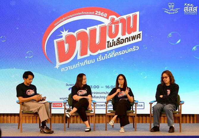 คุณจรีย์ ศรีสวัสดิ์ หัวหน้าฝ่ายส่งเสริมภาคีเครือข่าย มูลนิธิหญิงชายก้าวไกล กล่าวว่า ผลสำรวจความเห็นต่อการทำงานบ้านของประชาชนในกรุงเทพฯ และปริมณฑล 2,750 คน วันที่ 9-30 ต.ค. 2568 เป็นผู้หญิง 48.8% ผู้ชาย 41.2% LGBTQ+ 10 % ซึ่งกว่า 50 % มีประสบการณ์ในชีวิตคู่ โดยกลุ่มตัวอย่างเห็นด้วยให้ปลูกฝังการทำงานบ้านและฝึกให้เด็กทุกเพศทำงานบ้าน 90.7% ระบบการศึกษาควรปลูกฝังงานบ้านเป็นความรับผิดชอบของทุกคน 89% พ่อ แม่ ผู้ปกครองช่วยกันทำงานบ้านเป็นแบบอย่าง 86.2% ควรให้สิทธิพ่อลาเลี้ยงลูกได้ 15 วัน 85.3% เพราะช่วยแบ่งเบาภาระของแม่ และส่งผลดีต่อความผูกพันในครอบครัว