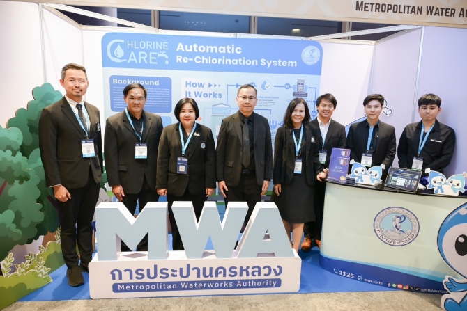 การประชุมและนิทรรศการ WDCE 2025 ถือเป็นหนึ่งในเวทีด้านน้ำที่ยิ่งใหญ่ที่สุดของโลก และจัดขึ้นในประเทศไทยเป็นครั้งแรก ภายใต้ธีม “Water, Sanitation & Innovation – Pathways to Progress anda Resilient Future” มุ่งเน้นการนำเสนอนวัตกรรมและแนวทางรับมือความท้าทายด้านน้ำ สุขาภิบาล และการพัฒนาระบบสาธารณูปโภค เพื่อสร้างอนาคตที่ยั่งยืน จัดขึ้นระหว่างวันที่ 8–12 ธันวาคม 2568 ณ ศูนย์การประชุมแห่งชาติสิริกิติ์ มีผู้เชี่ยวชาญด้านน้ำกว่า 2,500 คน จาก 90 ประเทศเข้าร่วมแลกเปลี่ยนองค์ความรู้และผลักดันความร่วมมือระดับนานาชาติ โดย กปน. ได้ร่วมจัดแสดงนิทรรศการในโซน Thai Pavilion และนำเสนอผลงาน Chlorine Care ระบบเติมคลอรีนอัตโนมัติ ควบคุมคลอรีนอิสระคงเหลือในถังพักน้ำ ให้ได้ตามเกณฑ์ที่ต้องการอย่างต่อเนื่องอัตโนมัติ สามารถติดตามและควบคุมค่าคลอรีนอิสระคงเหลือได้อย่างแม่นยำสม่ำเสมอตลอด