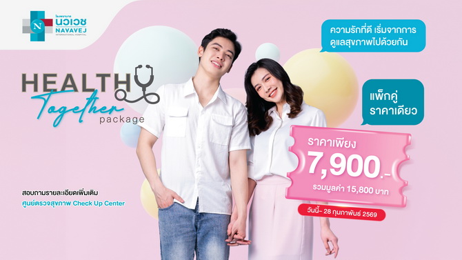 - รพ.นวเวช ชวนทุกท่านบอกรักคนพิเศษ ด้วยการมอบแพ็กเกจตรวจสุขภาพ Healthy Together ให้กับคนที่คุณรัก 2 ก.พ. 2569