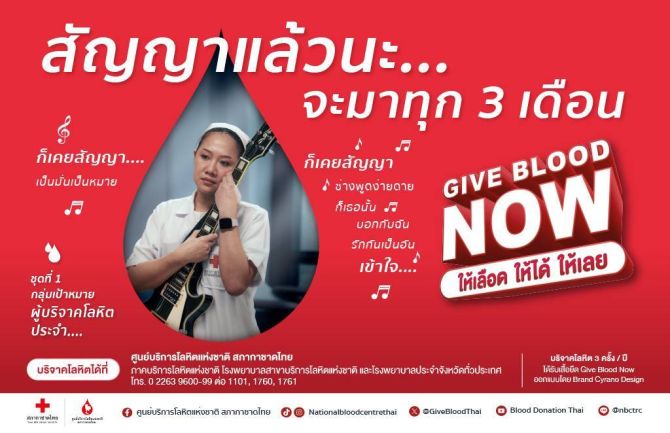 ศูนย์บริการโลหิตแห่งชาติ สภากาชาดไทย เดินหน้ารณรงค์การบริจาคโลหิตทั่วประเทศ เปิดตัวโครงการ “Give Blood Now – ให้เลือด ให้ได้ ให้เลย” เป็นโครงการหลักประจำปี พ.ศ. 2569 เชิญชวนประชาชนที่มีสุขภาพแข็งแรงร่วมบริจาคโลหิตอย่างสม่ำเสมอ ตลอดระยะเวลา 1 มกราคม – 31 ธันวาคม 2569 เพื่อสำรองโลหิตให้เพียงพอต่อการรักษาผู้ป่วยและรองรับสถานการณ์ฉุกเฉิน