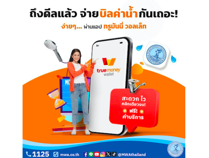 - กปน. จับมือ ทรู มันนี่ ยกเว้นค่าบริการจ่ายบิลค่าน้ำประปา 11 ก.พ. 2569