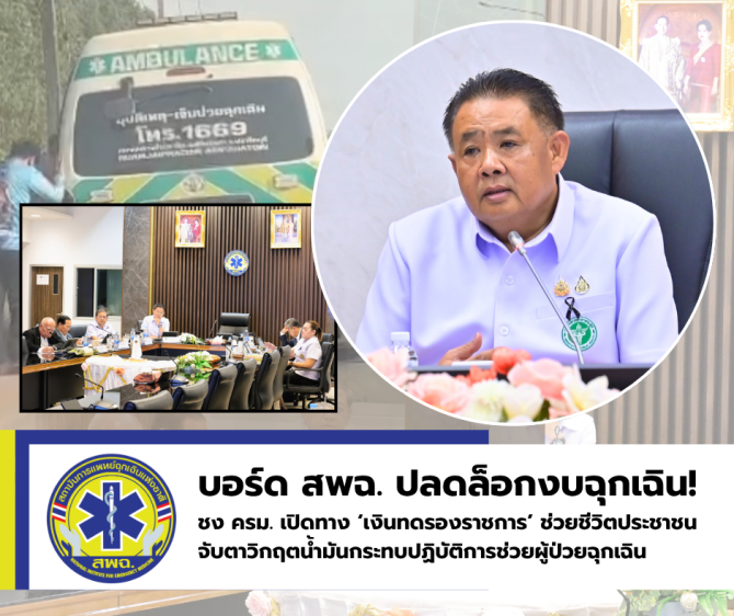 บอร์ด สพฉ. “ปลดล็อกงบฉุกเฉิน! ชง ครม. เปิดทาง ‘เงินทดรองราชการ’ ช่วยชีวิตประชาชนทันเวลา จับตาวิกฤตน้ำมันกระทบปฏิบัติการช่วยผู้ป่วยฉุกเฉิน