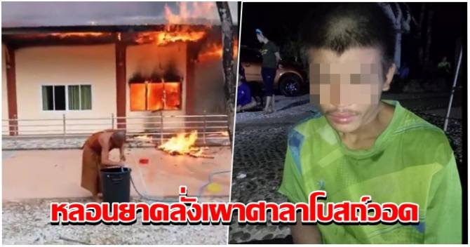 หนุ่มหลอนยาคลั่ง! เผาศาลาโบสถ์วัดป่าภูย่านางวอด อ้างปู่ดำสั่ง