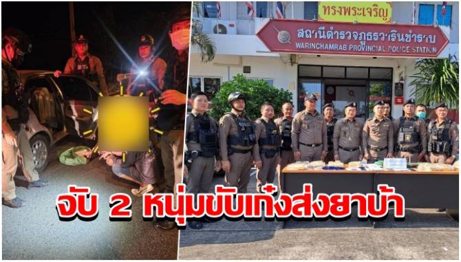 สายตรวจชุดพายุ สภ.วารินฯ จับ 2 หนุ่มขับเก๋งส่งยาบ้า ยึด 80,000 เม็ด