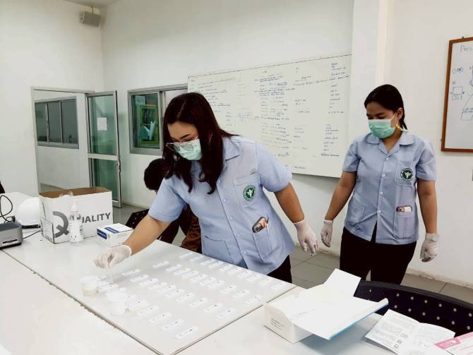 อำเภอท่าฉาง ลงพื้นที่สุ่มตรวจปัสสาวะหาสารเสพติดพนักงานบริษัทเอกชน พบฉี่ม่วง 7 ราย