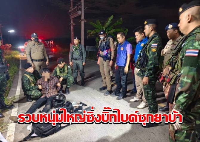 ปกครองแม่สอดสนธิกำลัง รวบหนุ่มใหญ่ซิ่งบิ๊กไบค์ซุกยาบ้า 1,600 เม็ด พร้อมอาวุธปืน