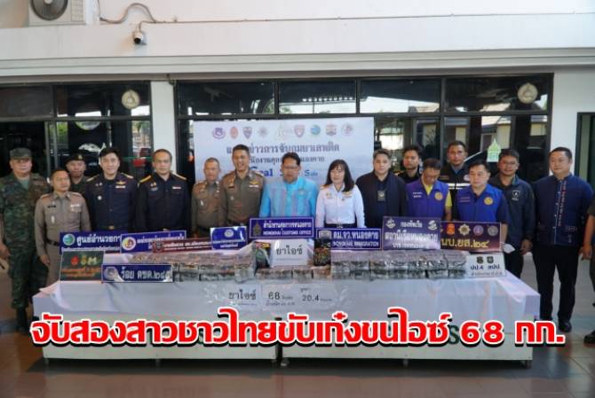 เมื่อเวลา 11.30 น. วันที่ 10 ต.ค.68 ที่ด่านพรมแดนสะพานมิตรภาพไทย – ลาว แห่งที่ 1 อ.เมืองหนองคาย นายสมภพ สมิตะสิริ ผู้ว่าราชการจังหวัดหนองคาย, พล.ต.ต.อัทธชนม์ ช่วงงาม ผบก.ภ.จว.หนองคาย, นางสาววรรณา ผู้อุตส่าห์ นายด่านศุลกากรหนองคาย ปฏิบัติหน้าที่ ผอ.ศุลกากรหนองคาย, พ.ต.อ.จิรวิทย์ ปานยิ้ม ผกก.สภ.เมืองหนองคาย, พ.ต.ท.อภิชาติ คลธา สว.ตม.หนองคาย, พ.อ.ชูชาติ นนทบุตร ผบ.บก.ควบคุมที่ 2 (ร.13)ฅ นายฤทธิ์ศรี โชติกเสถียร ผอ.ปป.4 สปป.ปปส. พร้อมตำรวจ, ตชด., นรข. ทหาร, ฝ่ายปกครอง ศุลกากร ได้ร่วมกันแถลงข่าวการจับกุม ผู้ต้องหา 2 คน ประกอบด้วย น.ส.ดารณี อายุ 34 ปี และ น.ส.อมรทิพย์ อายุ 34 ปี ทั้งสองคนเป็นชาว จ.มหาสารคาม และ จ.นครราชสีมาพร้อมของกลาง ยาไอซ์ จำนวน 68 หีบห่อ น้ำหนักประมาณ 68 กิโลกรัม มูลค่าประมาณ 20.4 ล้านบาท และรถยนต์โตโยต้า สีขาว ทะเบียนกรุงเทพมหานคร