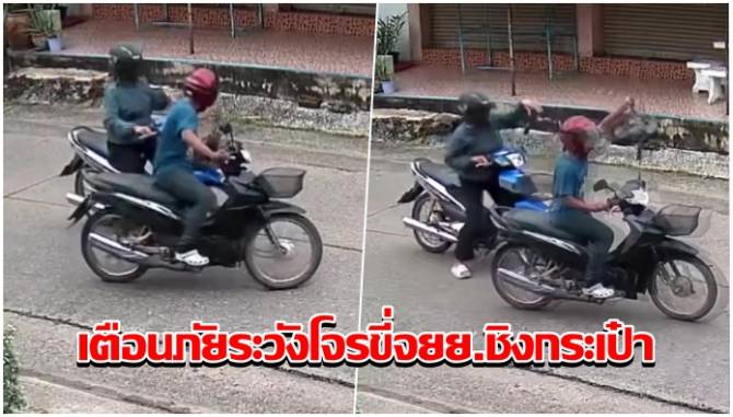 เตือนภัย! ระวังโจรขับมอเตอร์ไซด์ล่าเหยื่อชิงกระเป๋าสาวกลางวันแสกๆ