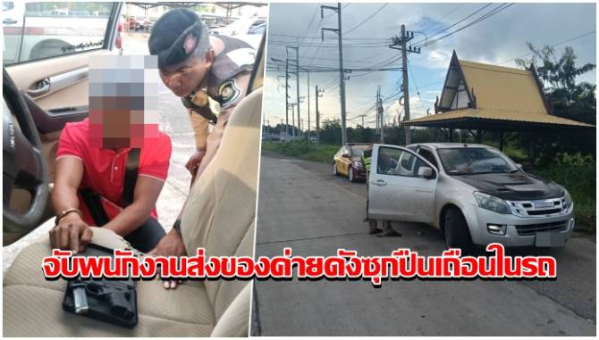 ระทึก! ตำรวจทางหลวงสกัดจับพนักงานส่งของค่ายดัง ค้นเจอปืนเถือน