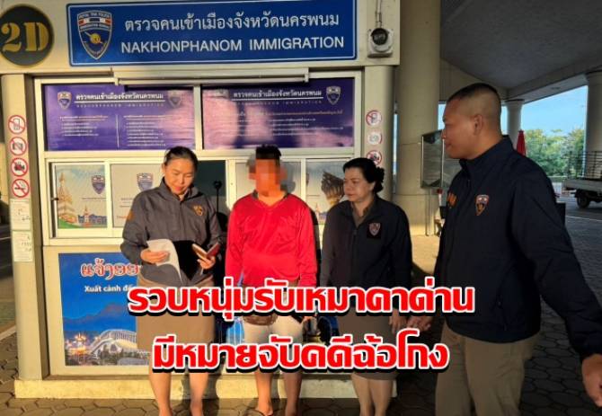 ตม.นครพนม รวบหนุ่มรับเหมาคาด่านเตรียมข้ามไปลาว ตรวจพบมีหมายจับคดีฉ้อโกง