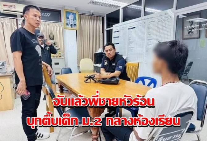 จับแล้ว! พี่ชายหัวร้อนบุกตื้บเด็ก ม.2 กลางห้องเรียน อ้างสุดทนน้องถูกแกล้งเคยช็อกหัวใจหยุดเต้น รับเสพยาบ้ามา 2 เม็ด