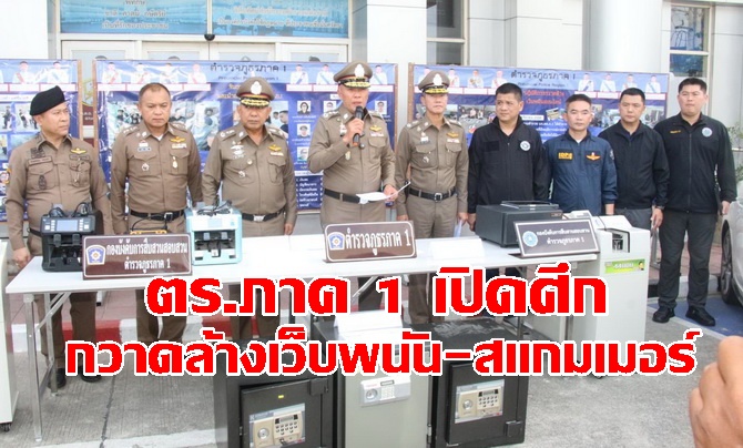 ตำรวจภูธรภาค 1 เปิดปฏิบัติการกวาดล้างเว็บพนันออนไลน์ – ลุยขยายผลขบวนการสแกมเมอร์ ฟอกเงินยึดเงินสดกว่า 30 ล้านบาท บัญชีม้า 100 ใบ พร้อมผู้ต้องหา 10 ราย