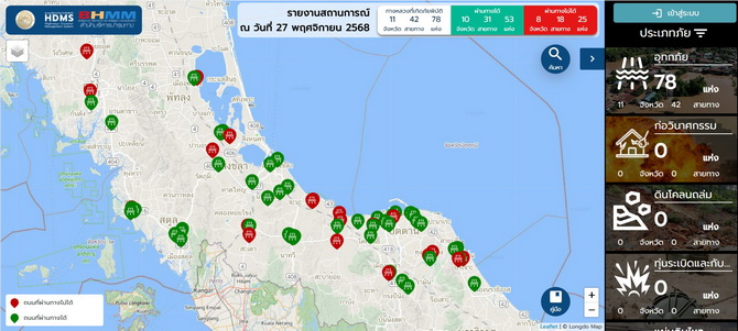 ทั้งนี้ พล.ต.ท.นิธิธร จินตกานนท์ ในฐานะหัวหน้าคณะทำงาน เสริมสร้างภาพลักษณ์ตำรวจจราจร (ศจร.ตร.) กล่าวเพิ่มเติมว่าจากข้อสั่งการ ของ ผอ.ศจร.ตร. ดังกล่าว ตำรวจทางหลวงได้ประสานข้อมูลกับกรมทางหลวง เกี่ยวกับเส้นทางที่ได้รับผลกระทบจากอุทกภัย เพื่อแจ้งให้พี่น้องประชาชนได้รับทราบ จึงขอแจ้งประชาสัมพันธ์ โดยท่านสามารถเข้าไปตรวจสอบข้อมูลเส้นทางที่มีน้ำท่วมขัง และเส้นทางหลีกเลี่ยงได้จาก ช่องทางhttps://hdms.doh.go.th/dashboard ทั้งนี้หากต้องการความช่วยเหลือด้านการจราจร และ เหตุฉุกเฉินต่างๆ สามารถแจ้งได้ที่สายด่วนตำรวจทางหลวง 1193 และสายด่วน 191 ตลอด 24 ชั่วโมง