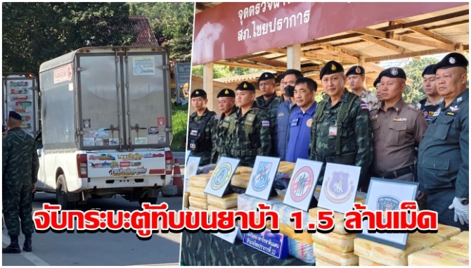 - กองกำลังผาเมืองสนธิกำลัง จับสองหนุ่มสาวขับกระบะตู้ทึบขนยาบ้า 1.5 ล้านเม็ด 27 พ.ย. 2568