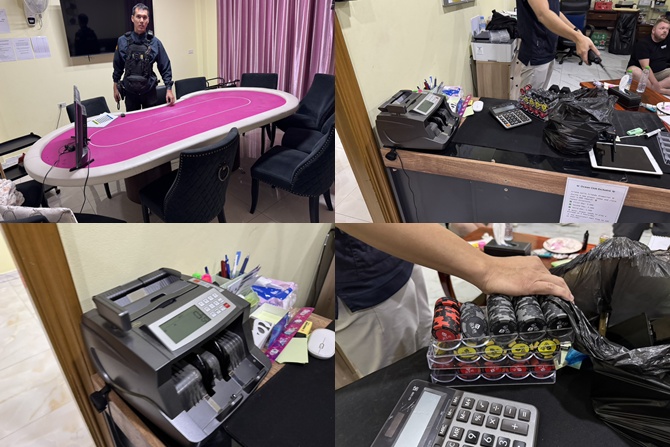 สตม.เปิดปฏิบัติการกลางดึก ทลายบ่อนโป๊กเกอร์กลางเมืองชล รวบนักพนักหลายสัญชาตินับสิบราย