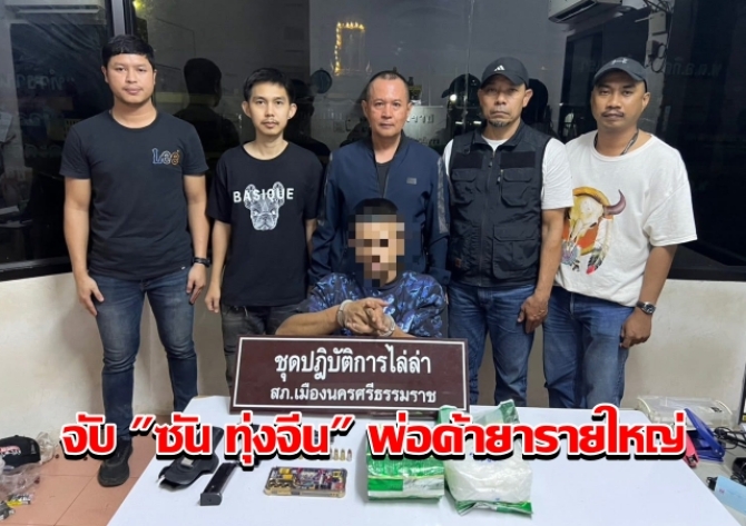 เมื่อวันที่ 19 มกราคม 2569 เจ้าหน้าที่ตำรวจสถานีตำรวจภูธรเมืองนครศรีธรรมราช เปิดปฏิบัติการกวาดล้างยาเสพติดรายสำคัญในพื้นที่ สามารถจับกุมพ่อค้ายาเสพติดรายใหญ่ที่เป็นที่รู้จักในฉายา “ซัน ทุ่งจีน” ได้พร้อมของกลางจำนวนมาก