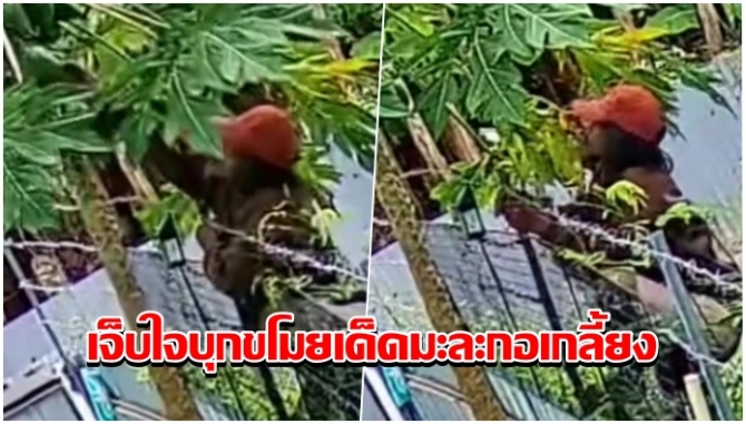 สุดเจ็บใจ! โจรแสบปีนรั้วบุกขโมยเด็ดมะละกอเกลี้ยงต้น