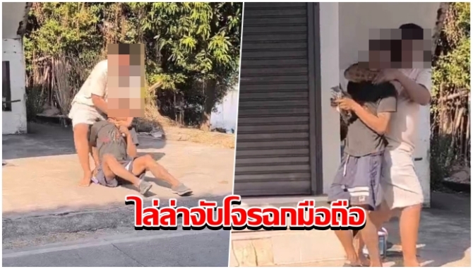 เจ้าของร้านก๋วยเตี๋ยวใจเด็ด ไล่ล่าจับโจรฉกมือถือกอดรัดฟัดเหวี่ยงจนร้องขอชีวิตเผลอวิ่งหนีหาย