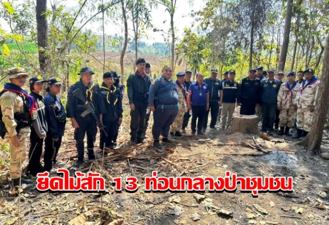 ปกครองอำเภอแม่ระมาดสนธิกำลัง ยึดไม้สัก 13 ท่อน กลางป่าชุมชน